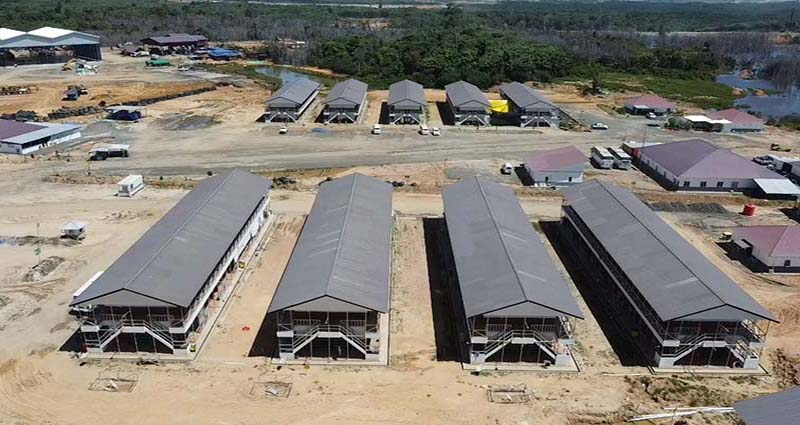 The building structure itself could be a traditional steel building or a more modern facility with automation.